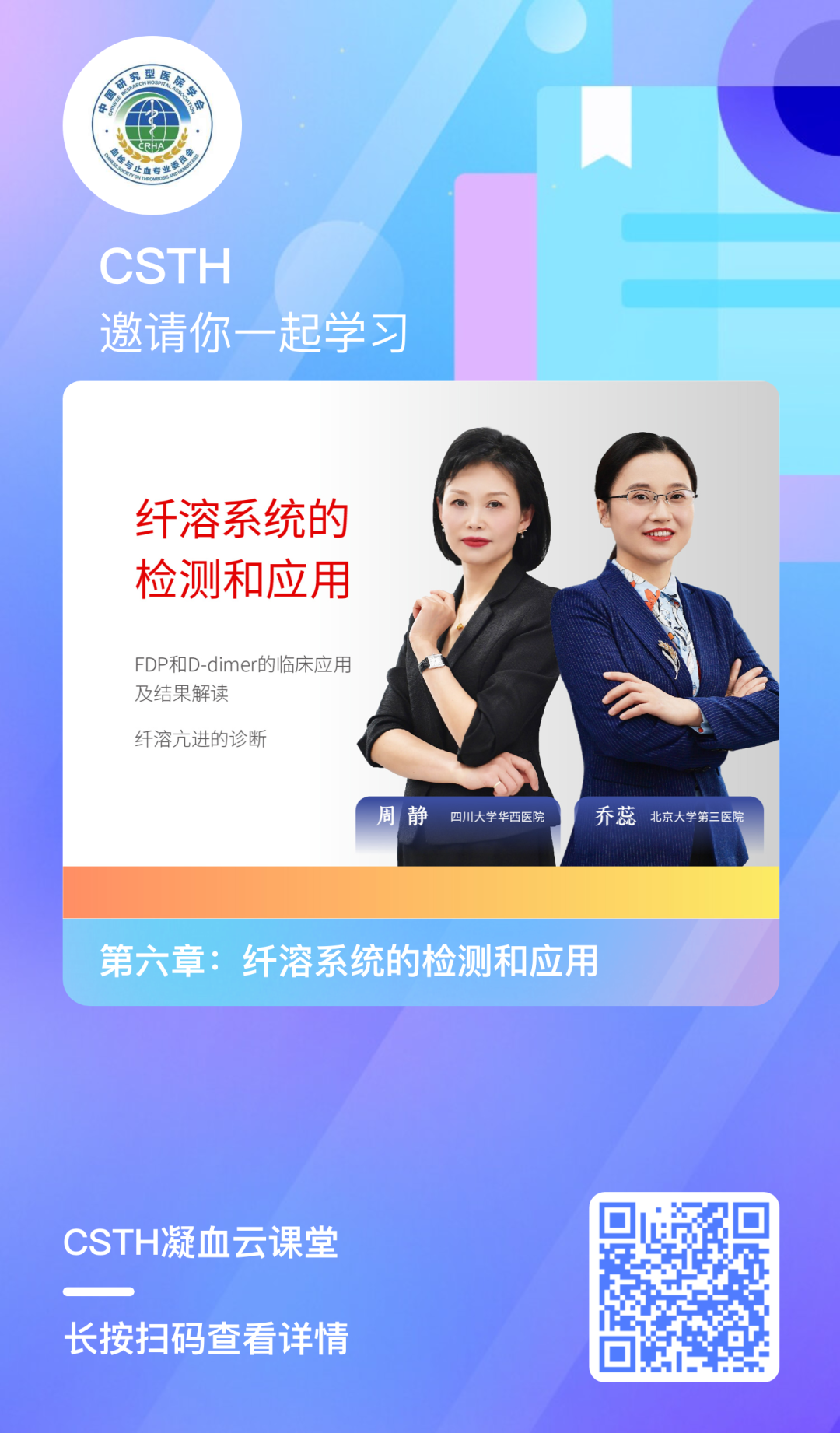 凝血云課堂是中國研究型醫(yī)院學(xué)會血栓與止血專業(yè)委員會打造的學(xué)習(xí)平臺。CSTH凝血云課堂集結(jié)了國內(nèi)眾多優(yōu)秀的凝血專家學(xué)者,系統(tǒng)地針對血栓與止血實驗室相關(guān)檢測基礎(chǔ)理論、指標(biāo)、指南共識、儀器操作、案例等等各方面為大家傳道解惑,利用網(wǎng)課開設(shè)一系列專業(yè)系統(tǒng)的凝血繼續(xù)教育課程,對大家完全免費,幫助大家系統(tǒng)的了解和學(xué)習(xí)這門學(xué)科。