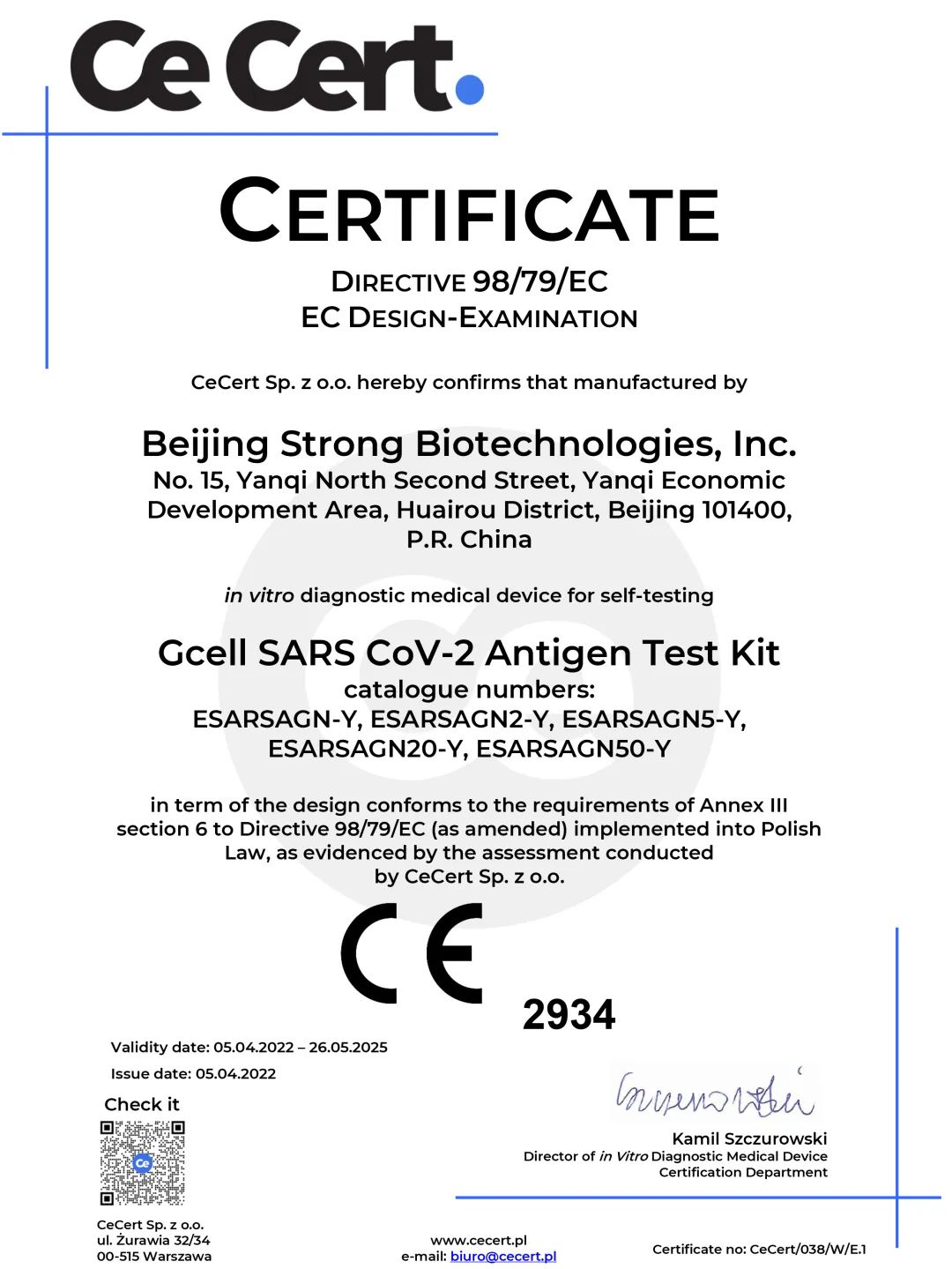 九強(qiáng)生物新型冠狀病毒抗原自測(cè)試劑盒(SARS CoV-2 Antigen Test Kit)于2022年4月5日取得歐盟CE準(zhǔn)入資格!這意味著該自測(cè)試劑盒可在歐盟國(guó)家以及認(rèn)可歐盟CE認(rèn)證的國(guó)家進(jìn)行銷售。