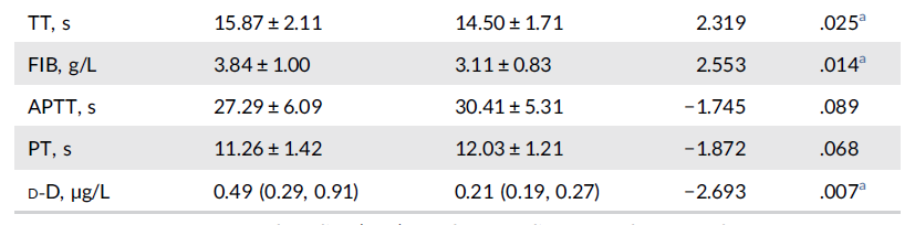 血漿D-二聚體是交聯(lián)纖維蛋白在纖溶酶的作用下水解產(chǎn)生的特異性降解產(chǎn)物,主要反映纖維蛋白的溶解功能,是確定體內(nèi)有無血栓形成及繼發(fā)性纖溶的特異性指標(biāo)之一,也是反映凝血與纖維蛋白溶解活化的分子標(biāo)志物[2]。