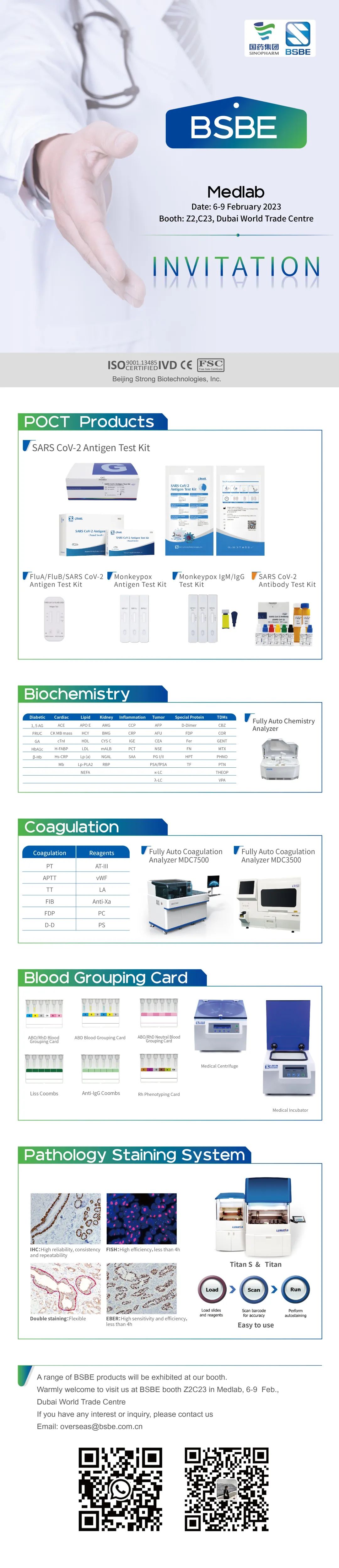 九強生物將赴迪拜參加2023年2月6日-9日召開的迪拜實驗室及臨床醫(yī)學展覽會(Medlab Middle East 2023)。