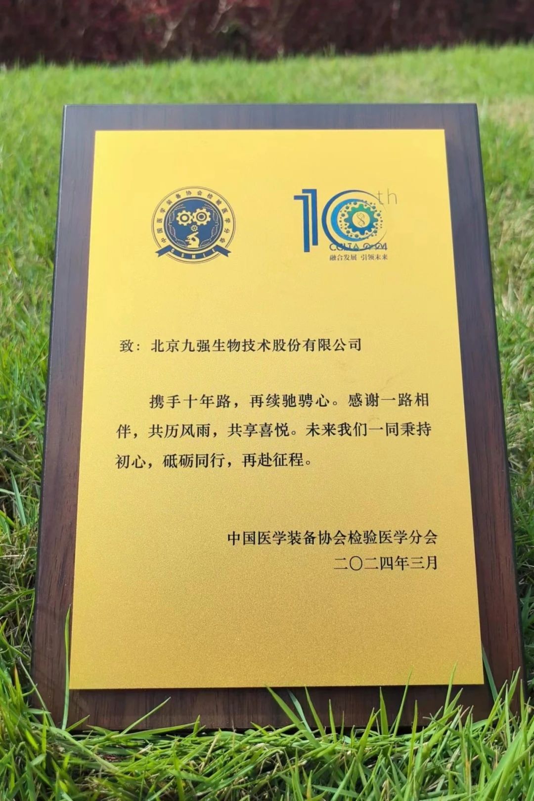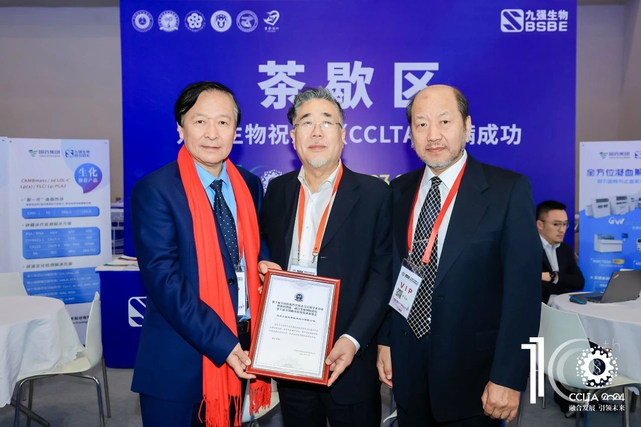 大會(huì)期間,中國(guó)醫(yī)學(xué)裝備協(xié)會(huì)檢驗(yàn)醫(yī)學(xué)分會(huì)第三屆委員會(huì)第三次全體委員會(huì)議同步召開,九強(qiáng)生物董事長(zhǎng)鄒左軍先生出席并上臺(tái)領(lǐng)取十周年企業(yè)感謝狀。CCLTA迎來十周年,在深耕學(xué)術(shù)、以發(fā)展為中心的精耕理念下,實(shí)現(xiàn)檢驗(yàn)醫(yī)學(xué)事業(yè)的大步拓新。
