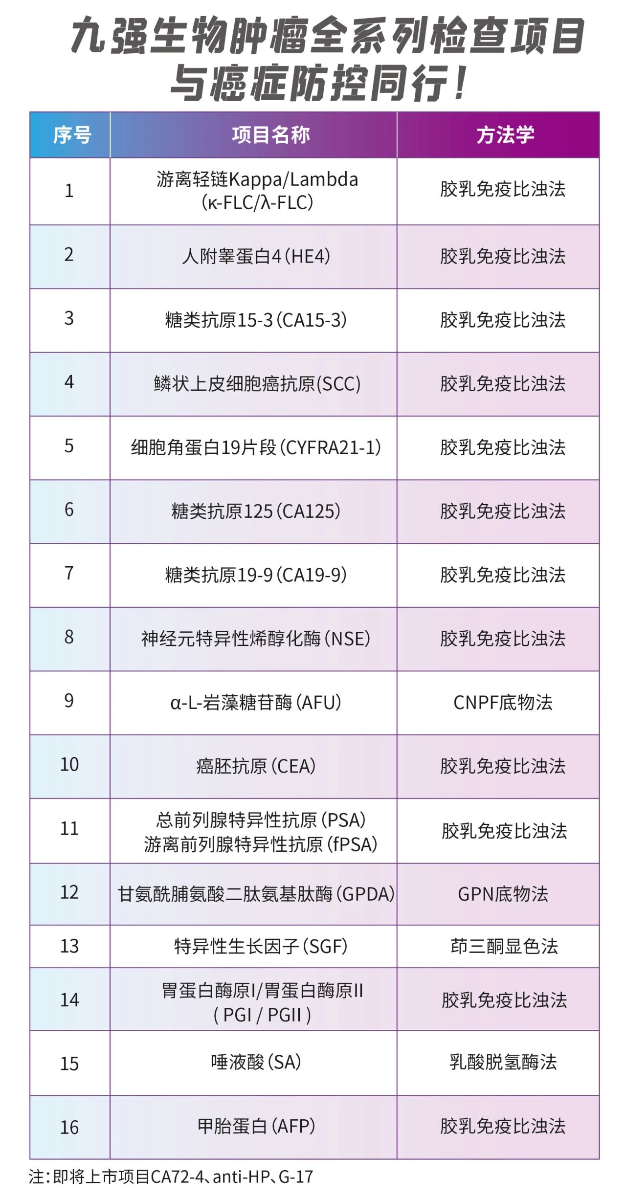 ①全面的腫瘤項目菜單,涵蓋常見腫瘤的標志物
