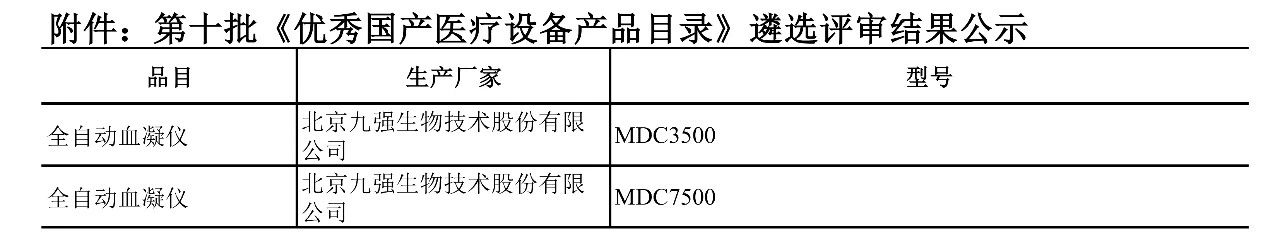 喜訊 | 九強生物凝血分析儀入選第十批《優(yōu)秀國產(chǎn)醫(yī)療設(shè)備產(chǎn)品目錄》