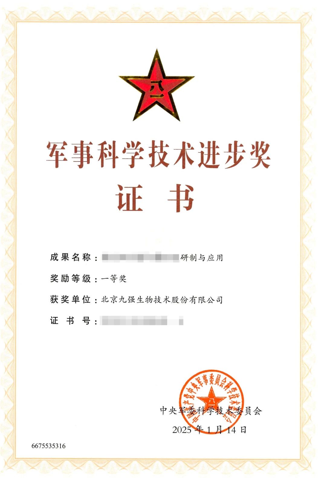 喜訊 | 九強(qiáng)生物榮獲軍事科學(xué)技術(shù)進(jìn)步一等獎!