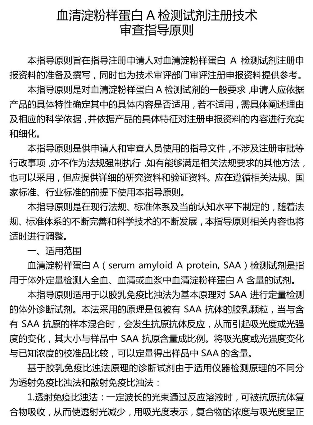 血清淀粉樣蛋白A檢測試劑注冊技術(shù)審查指導(dǎo)原則